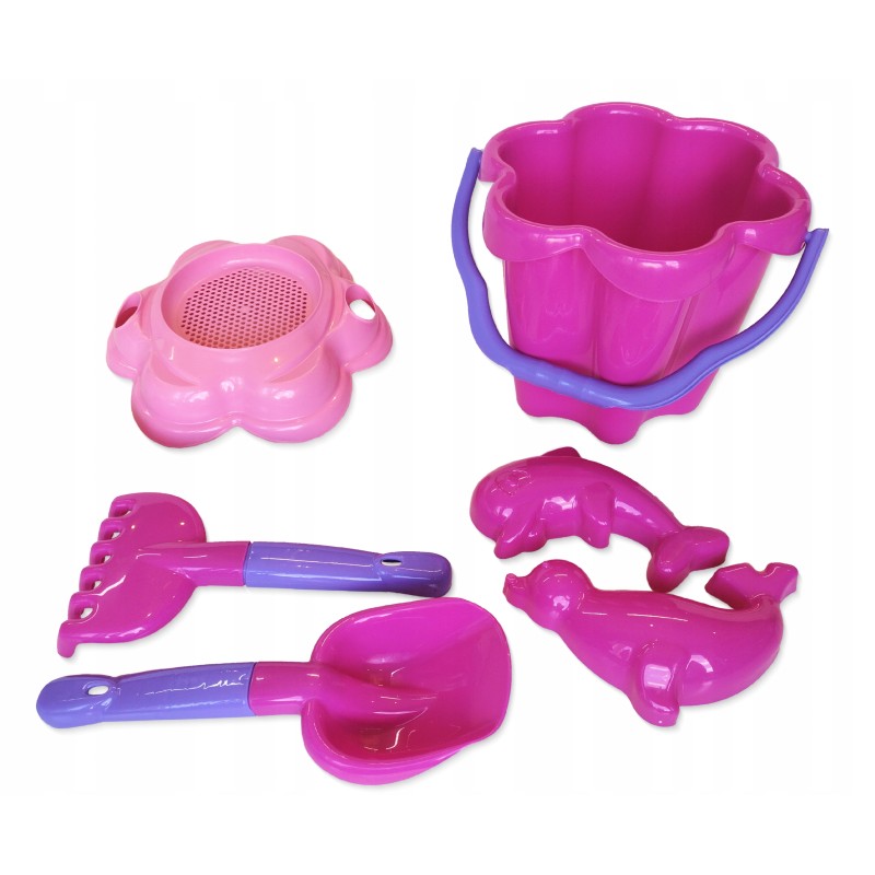 ⭐ Zestaw do piasku "Kwiatkowy Raj " - Wiaderko , Łopatka, Grabki + Foremki Delfinek i foczka ⭐
